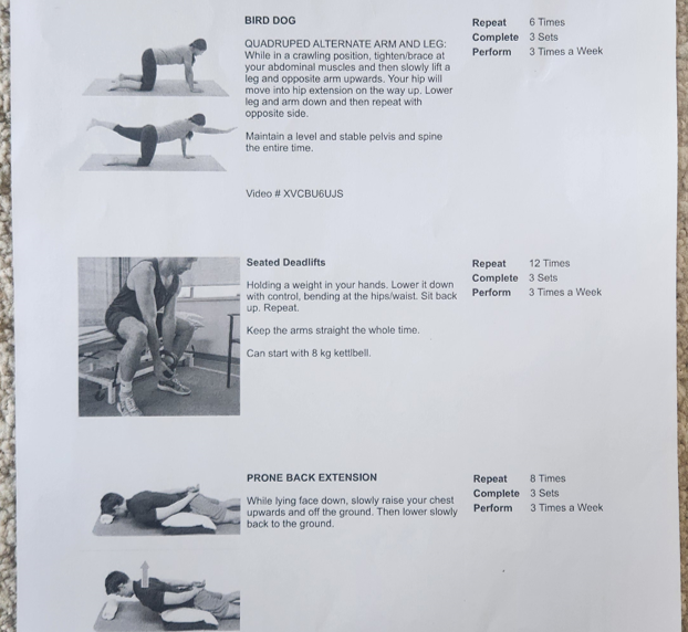 그 후 2주 간격으로 3~4번 정도 더 진행했고, 갈 때마다 통증에 도움이 되는 스트레칭과 근력을 키울수 있는 운동을 알려주었다. 알려준 스트레칭과 운동은 세션이 끝난뒤 출력해서 주셨다. 갈 때마다 20불 내는게 아까워서 평소에 생활하며 허리나 목어깨에 조금이라도 불편한 점이 있으면 다 말했다 ㅋㅋ 그래도 담당 therapist가 몹시 친절했고 운동할 때 세심하게 잘 지켜봐주고 운동할 때 잘못된 자세를 교정해줘서 좋았다. 그치만 아무리 생각해도 더 갈 필요가 없겠다는 생각이 점점 더 강하게 들어서 '정말 많이 좋아졌고 도움이 많이 됐다, 당분간은 알려준 운동 계속 지속하다가 다시 불편한게 생기면 연락하겠다'며 마지막 세션을 끝냈다.